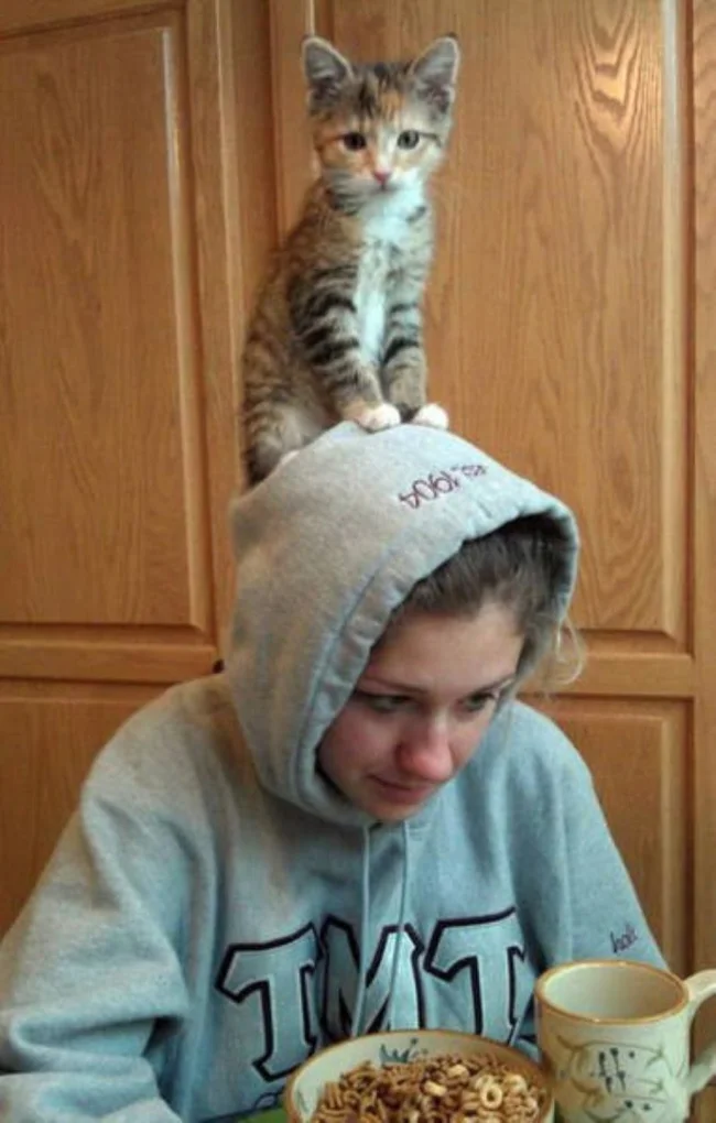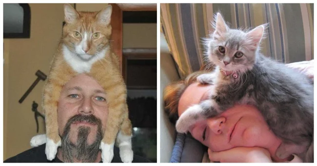 20 пушистых нахалов, которые в буквальном смысле залезли на голову хозяевам (21 фото)