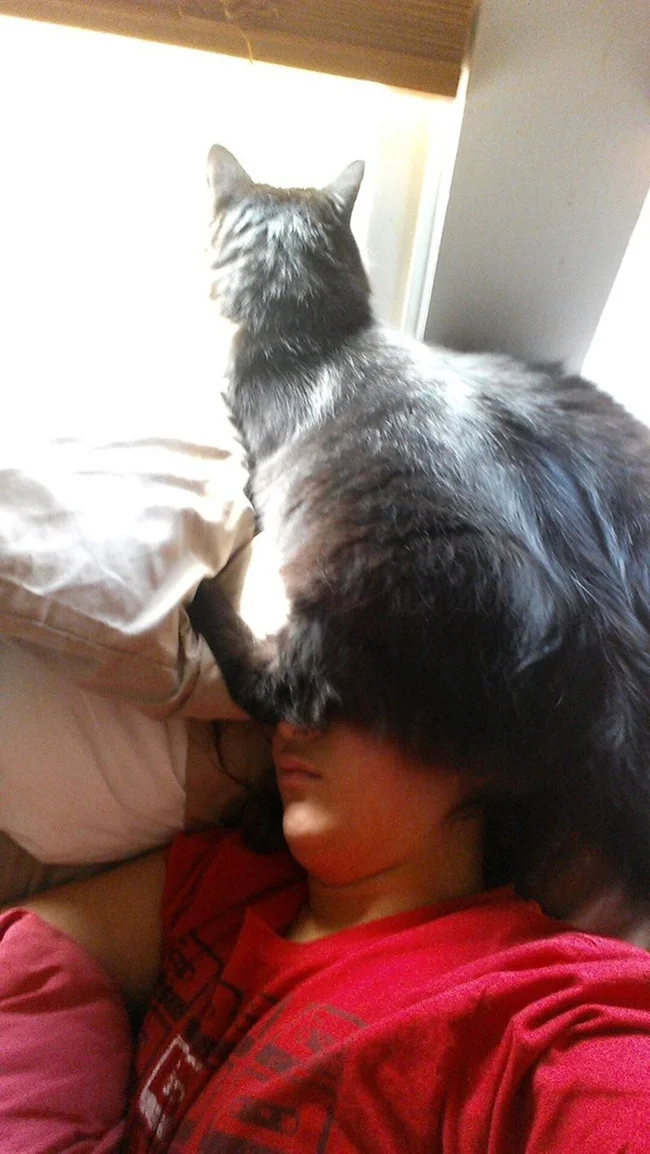 Но иногда любимцы, особенно котики, в буквальном смысле лезут на голову своим хозяевам, понимая, что даже за такое наглое поведение им ничего не будет. Ведь пушистые – животные древние, священные и неприкосновенные. И доказательством этого служат фото котовладельцев, смирившихся со своей судьбой.