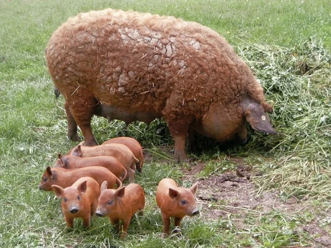 Венгерская порода домашних свиней. Кудрявая шерсть мангалицы делает её похожей на овцу.