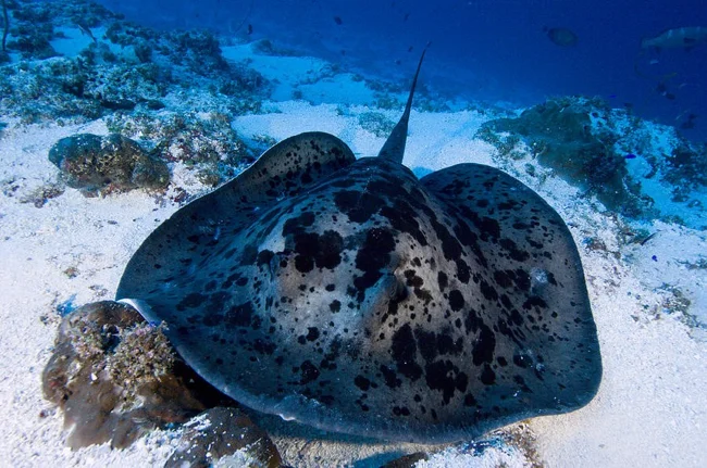 Этот вид скатов большую часть дня лежит неподвижно и не проявляет агрессии по отношению к людям. Известны случаи, когда они подплывали к дайверам и осматривали их.