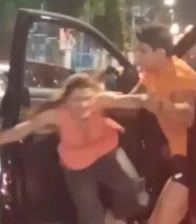 На других кадрах Фабрисио выходит из автомобиля и толкает жену.
