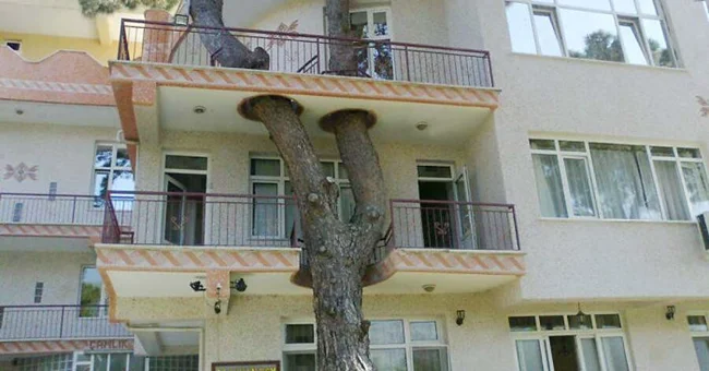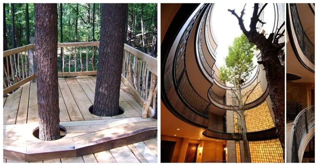 2. Лестница построена вокруг дерева