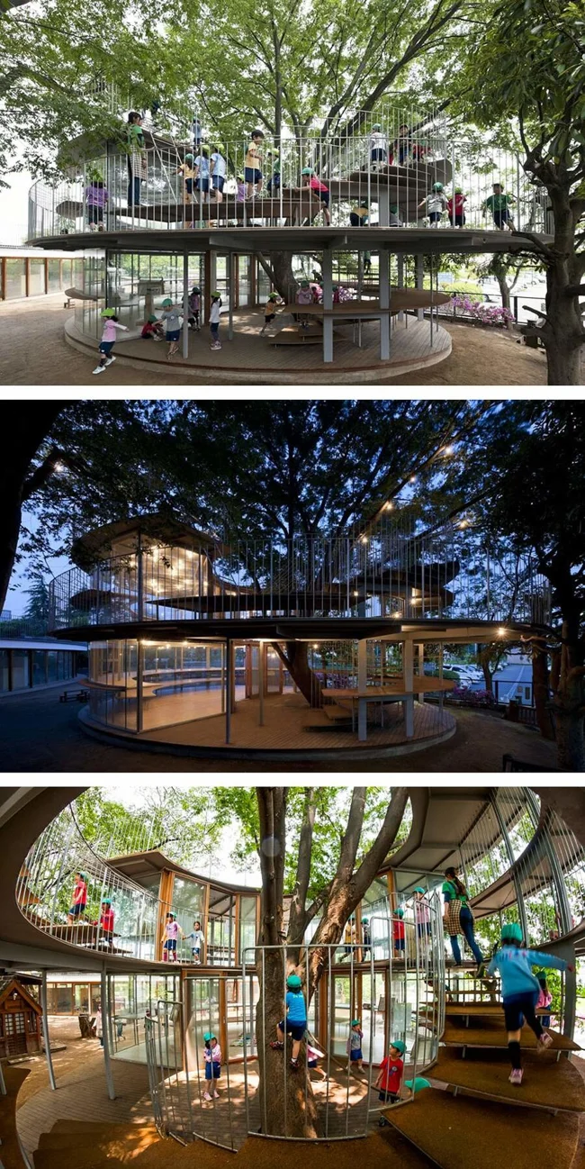 5. Детская площадка, построенная вокруг дерева