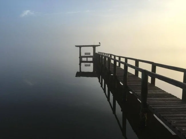 Несколько лет назад я успел сделать фото тумана, почти плавно сливающегося с водой.