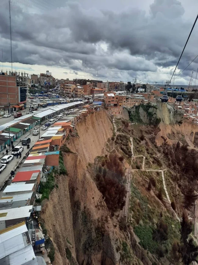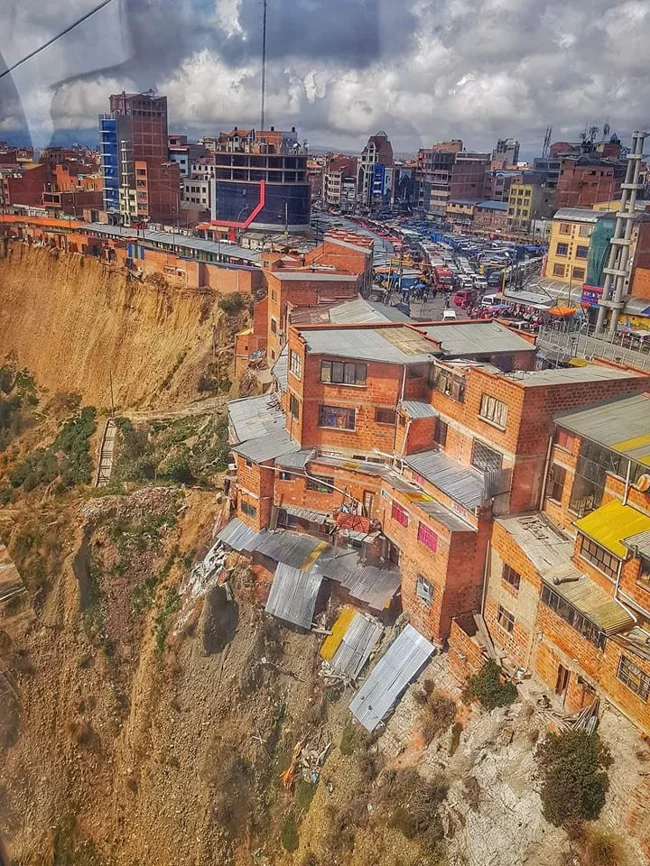 В городе Эль-Альто, расположенном рядом со столицей Боливии Ла-Пасом, сотни зданий на краю крутого земляного утеса находятся под угрозой разрушительных оползней. Несмотря на явную опасность, многие местные жители отказываются покидать свои дома, связывая это с местом работы или культурными традициями.