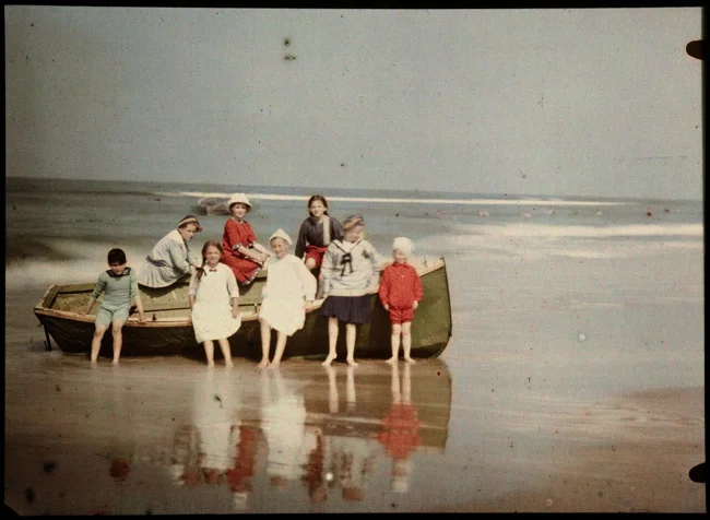 Дети и шлюпка на побережье Северного моря, Нидерланды, ок. 1925, автохром