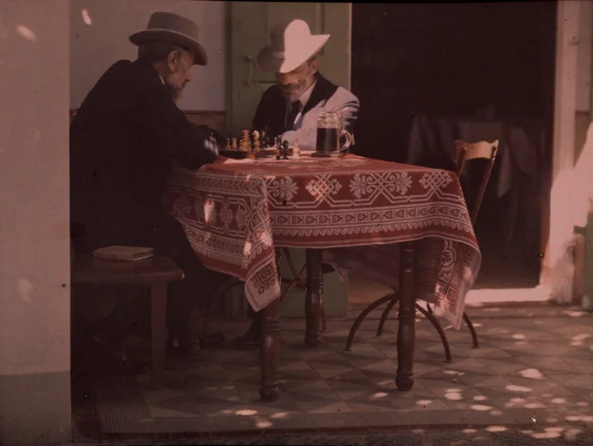 Двое мужчин играют в шахматы, Нью-Джерси, 1907. Автохром, фотограф Альфред Стиглиц