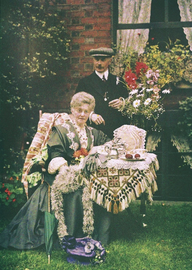 Чаепитие в саду, автохром, ок. 1910