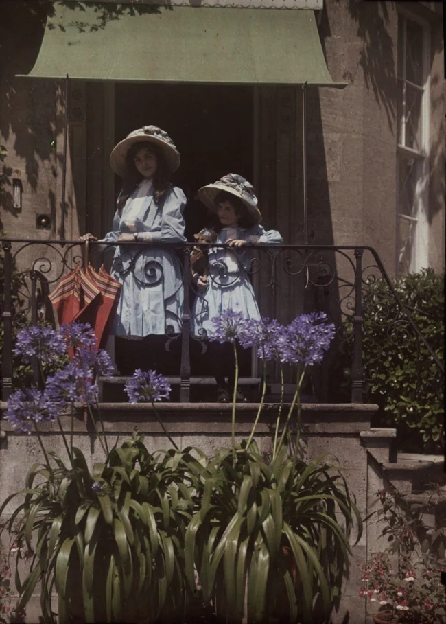 Сёстры на балконе, ок. 1910. Автохром, фотограф Этельреда Джанет Лэйнг
