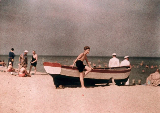 Сын фотографа на пляже, 1929 – 1933. Автохром, фотограф Фридрих Панет