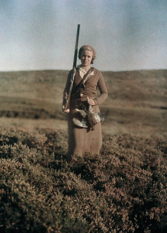 Женщина на охоте, 1920-е. Автохром, фотограф Фридрих Панет