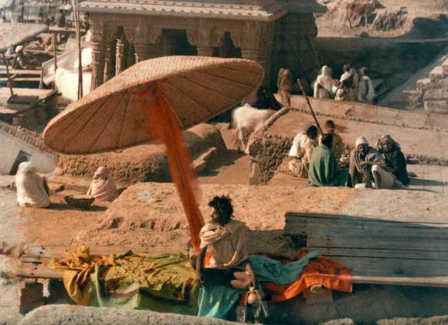 Факир на берегу Ганга в Варанаси, Индия, 1926. Автохром, фотограф Жюль Жерве-Куртельмон
