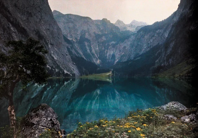 Ледниковое озеро в горах Баварии, Германия, 1928. Автохром, фотограф Ганс Хильденбранд