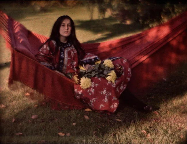Портрет Элси Тудлз Томас в красном гамаке, ок. 1908. Автохром, фотограф Элвин Лэнгдон Коберн