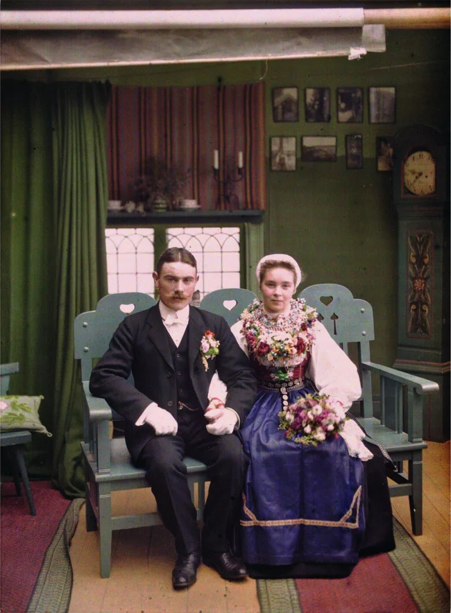 Молодожёны, Швеция, 1910. Автохром, фотограф Огюст Леон