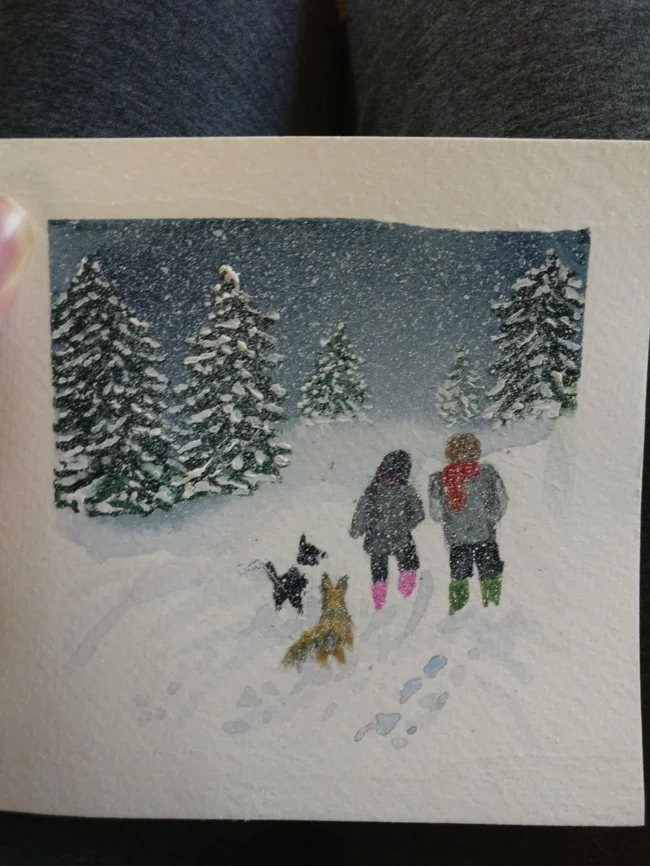 11. Свекровь нарисовала открытку со мной, моим мужем и нашими собаками