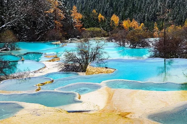 В Хуанлуне берёт начало река Фуцзянь. С обеих сторон долину обрамляют хвойные леса. Всего на территории заповедника находится более 3500 озёр. Озёра неглубокие, и из-за низких берегов вода буквально переливается из одного в другое. Самые большие по площади озёра сравнимы с бассейном внушительных размеров, а самые миниатюрные — не больше тарелки.