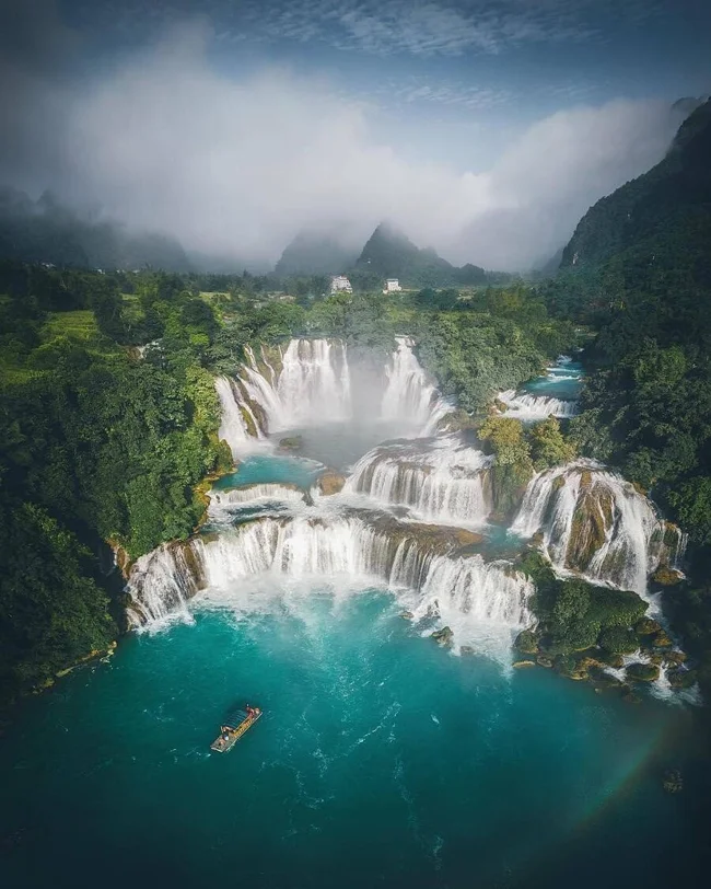 Расположен в 90 километрах к северо-востоку от райцентра Cao Bang. На самом деле водопад Ban Gioc это трехуровневый каскад водопадов. Высота 53 метра, ширина 300 метров. Расположен на реке Quay Son. Река является границей между Китаем и Вьетнамом. Поэтому левая часть водопада принадлежит Вьетнаму, а правая Китаю.