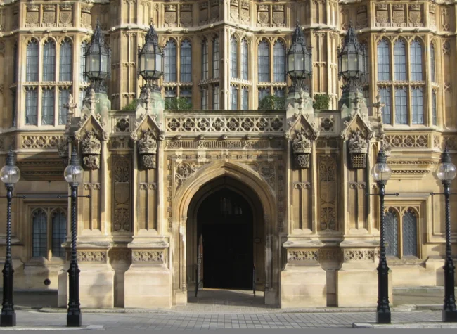 Итак, мы добрались до северной оконечности Вестминстерского дворца. Видим неприметную дверь (1), на которой написано Elizabeth Tower.