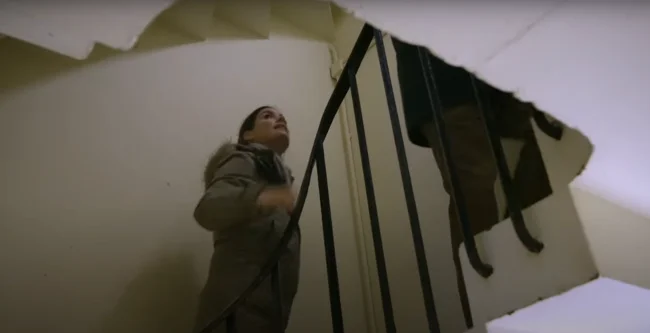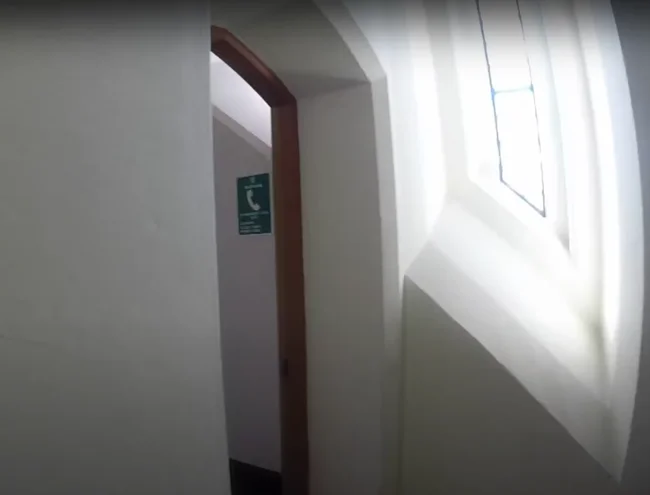 Возвращаемся обратно. Снова видим ещё один лестничный марш. Выдохните, он короткий. Поднимаемся по нему и натыкаемся на дверь. Открываем её.