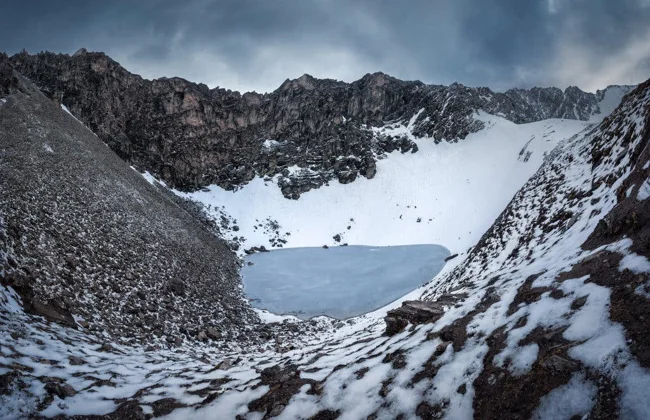 На захватывающей дух высоте 5000 метров над уровнем моря девственные воды Гималаев большую часть года лежат, скованные льдом. Однако летом опасные потоки освобождаются от своих ледяных оков, открывая русло реки, упирающееся в берег из останков скелетов, замаскированных тенями изрезанного склона.