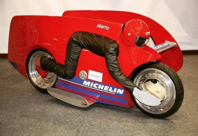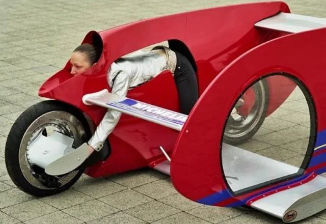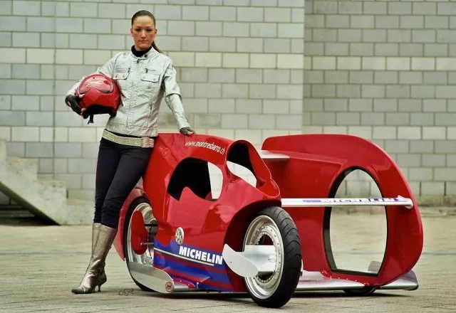 История знает и такие концепты, которые удивляют. Перед нами Sbarro Aero. Водитель ложится животом на сиденье, а его руки располагаются по бокам от переднего колеса. Машина развивает скорость до 300 км/ч.