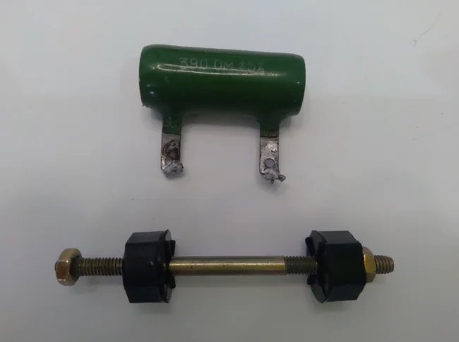Винт с гайками и пластиковыми шайбами выступает только в качестве крепежной конструкции данного резистора внутри изделия и не влияет на параметры данного резистора. Если в крепеже нет потребности его можно просто снять. Откручиваете гайки по бокам резистора и извлекаете винт из керамического корпуса резистора.