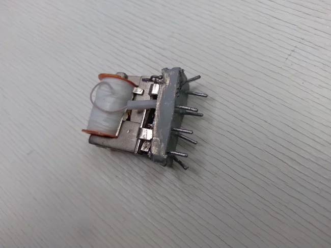 Теперь, когда с общи принципом работы данного реле все понятно, давайте попробуем посмотреть, что у него находится внутри. Сделать это не так то и просто, корпус данного реле литой и герметичной, верхнюю его часть придется срезать ножовкой, чтобы докопаться до его внутренностей.