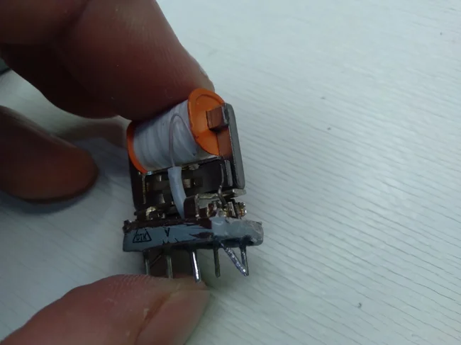 Под корпусом нам предстает вид на внутренний вид данного реле. Обратите внимание на фото ниже, на нем вы можете увидеть, что контакт А подключен к обмотке катушки, расположенной в верхней части реле.