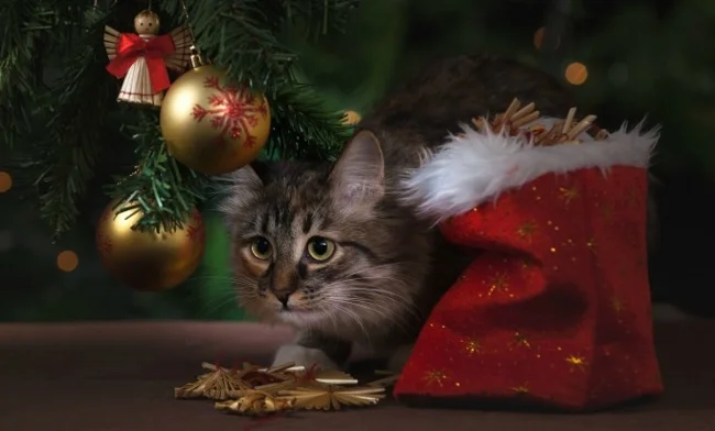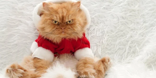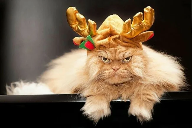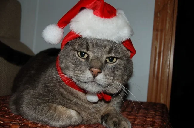 22 котика, которые не в восторге от зимних праздников (23 фото)