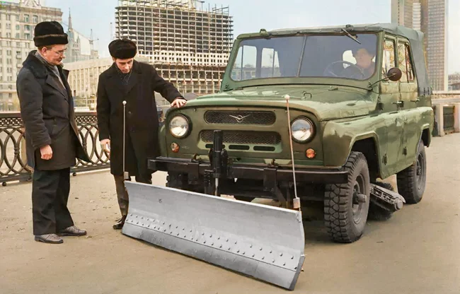 Последний именно такой экспериментальный УАЗик в Москве благополучно дожил до 2013-го года, правда уже без навесного оборудования, но с задними огнями на отдельных "ногах", а не в стенке кузова. Часто стоял на улице Вавилова в районе 90-х домов.