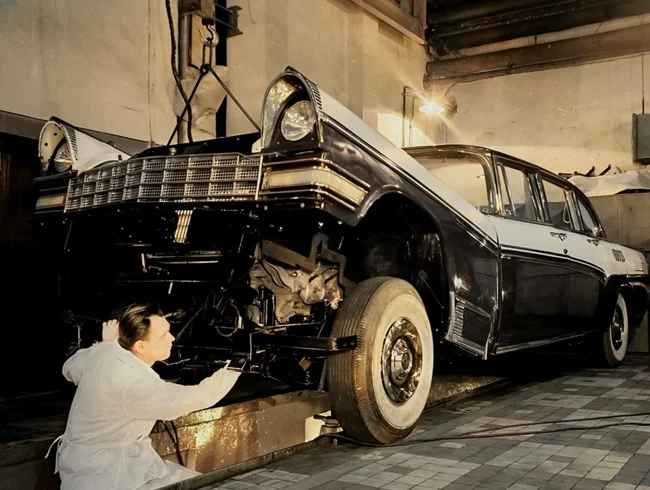 Сборка ЗиЛ-111 в одном из боксов Экспериментального цеха ЗиЛ. Москва, 1959 год.