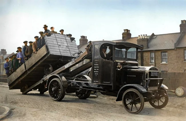 Мусорщики из Уондсворта на борту грузовика, который вез их на работу во время забастовки, 1924 год.