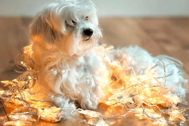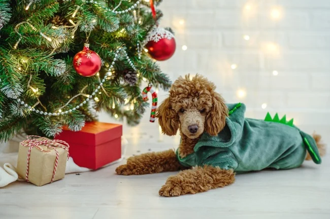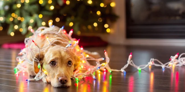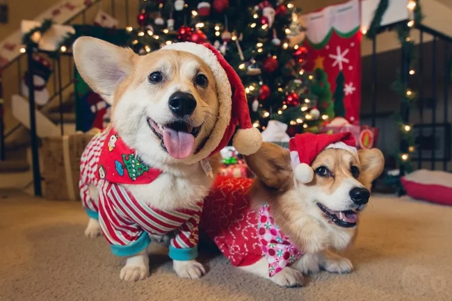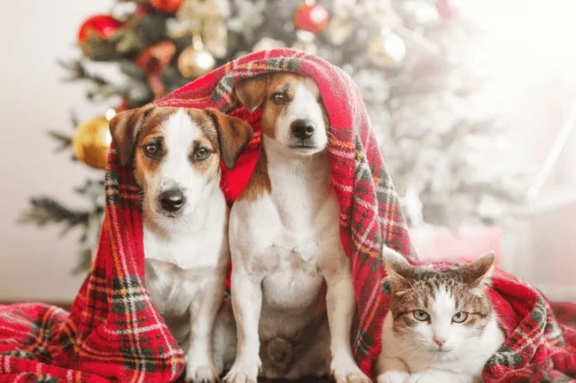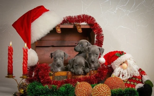 Новогодние декорации хороши тем, что в них всё сверкает, сияет и переливается, создавая волшебное настроение. И братья наши меньшие во всей этой ёлочно-гирляндной феерии тоже выглядят волшебно, словно персонажи сказок или мультфильмов.