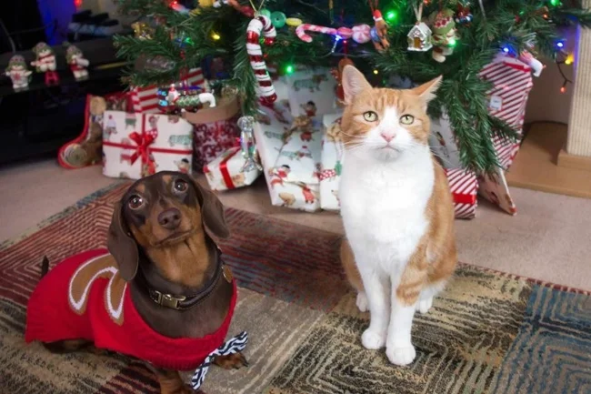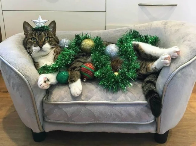 25+ питомцев, которые сфотографировались на фоне новогодних декораций и стали их главным элементом (26 фото)