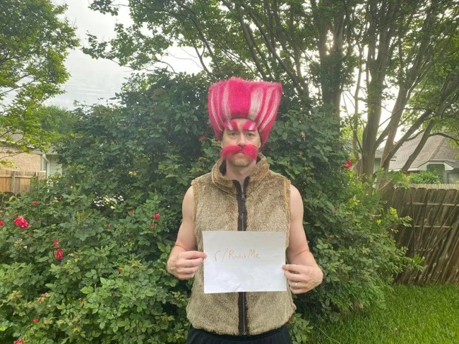 Я проиграл пари и должен был присутствовать на премьере «Троллей» в этом костюме в качестве наказания, но случился коронавирус, так что теперь, ребята, вы можете подшучивать надо мной онлайн.