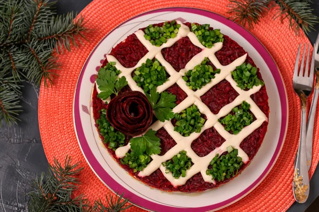 Нет, теоретически без этого и других салатов можно обойтись. Тем более что приверженцев гастрономического минимализма в последнее время прибавилось. Но как тогда реализовать творческий потенциал и превратить салат в шедевр? Ведь есть повод – Новый год, который бывает только раз в год. Вариантов оформления новогодних салатов масса, и в любом случае декор – это дополнительный способ создать себе и родным новогоднее настроение.