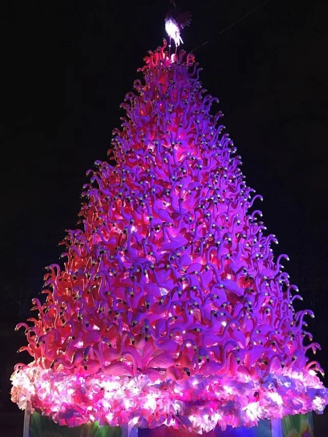 Праздничная ёлка, сделанная из искусственных фламинго! Прямо розовое безумие какое-то