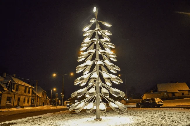 Эта новогодняя ёлка сделана из старых уличных фонарей