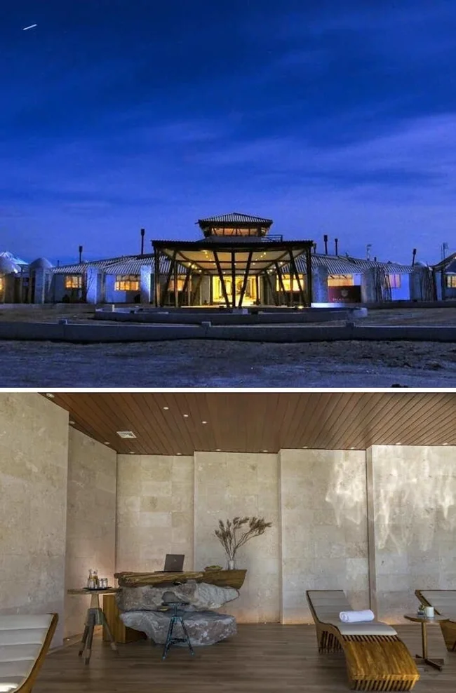 Отель Соляной дворец в Боливии расположен на краю крупнейшей соляной пустыни в мире, Салар-де-Уюни, и построен из соляных блоков.