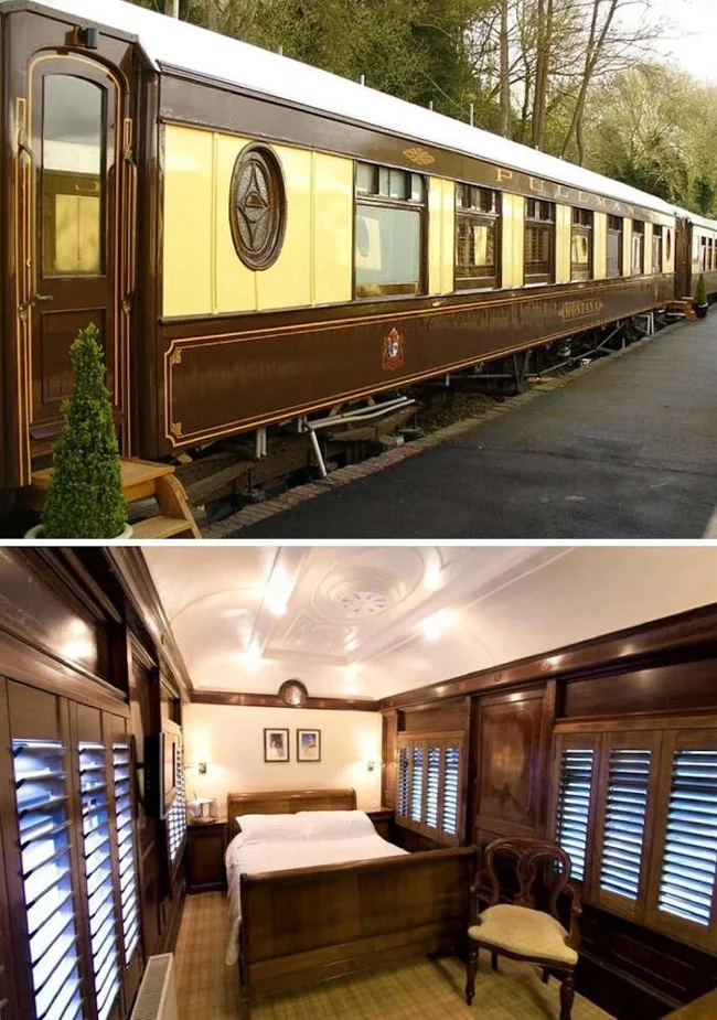 Старый железнодорожный вокзал в Соединенном Королевстве - это отель, построенный из полностью отреставрированных железнодорожных вагонов XIX века. Очень атмосферное место.