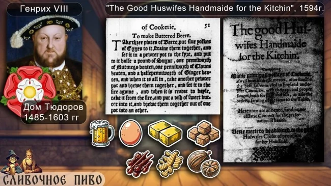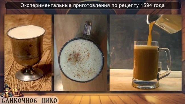 Дотошные фанаты порылись в архивах и нашли оригинальный английский рецепт времен эпохи Тюдоров. Известно, что любителем «Сливочного пива» был Генрих VIII. И был этот напиток хоть слабо, но алкогольным. Согласно рецепту 1594 года, напиток готовили путём нагревания и смешивания пива, куриных желтков, тростникового сахара и сливочного масла с добавлением специй (мускатный орех, имбирь и гвоздика).