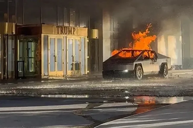 Tesla Cybertruck взорвался около башни Трампа в Лас-Вегасе (2 фото + 5 видео)