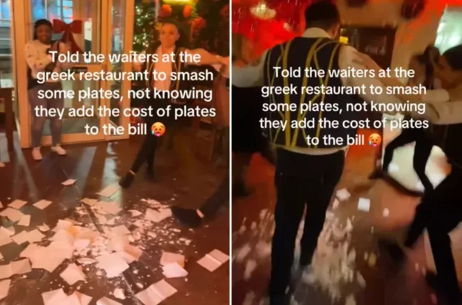 Группа друзей, которая веселилась в одном из греческих ресторанов города Бирмингем (Великобритания), решила приобщиться к традиционной практике битья тарелок "на счастье", но оказалось, что это не бесплатно.