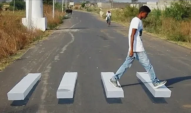 Внезапно в Индии он оказался довольно успешным. Быть может, дело в менталитете и особой визуальной доверчивости индусов, но уровень порядка на улицах от такого 3D-перехода именно здесь оказался максимальным.