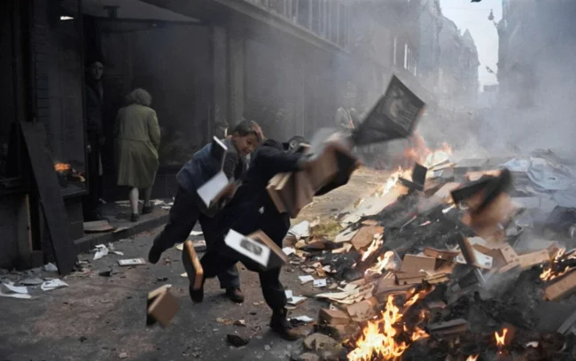 Дети жгут советскую литературу и пропагандистские материалы на улице Ваци. Будапешт, 1956 год.
