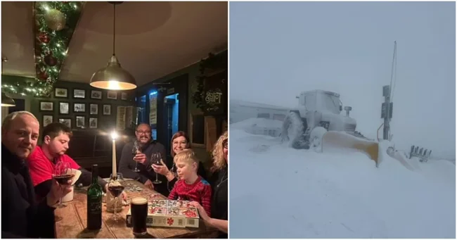 Несмотря на предупреждение о возможном буране, 23 человека, включая 4-летнего ребенка и собаку, в прошлую субботу все же решили посетить паб. Синоптики не соврали, буран действительно начался, и через несколько часов намело приличные сугробы.