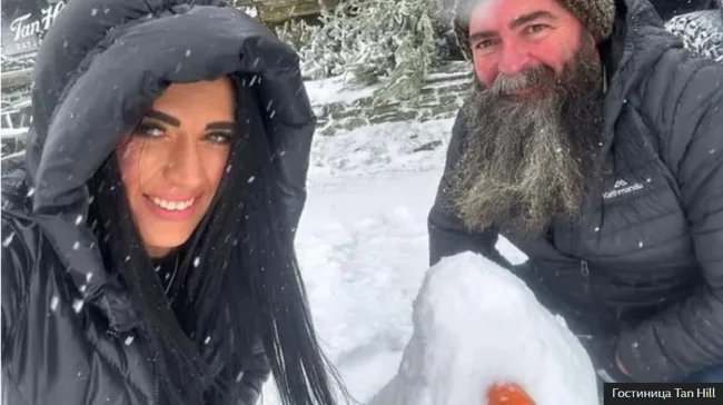 Никола Хейс обучает австралийца Пола Райта технике лепки снеговиков.