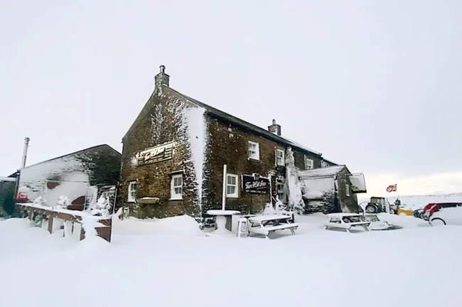 Британский паб Tan Hill Inn, расположенный на высоте 528 метров, оказался в снежной ловушке во время сильного бурана.