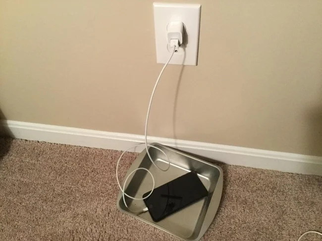 Мама кладёт телефон в форму для торта, потому что услышала, что во время зарядки телефоны взрываются